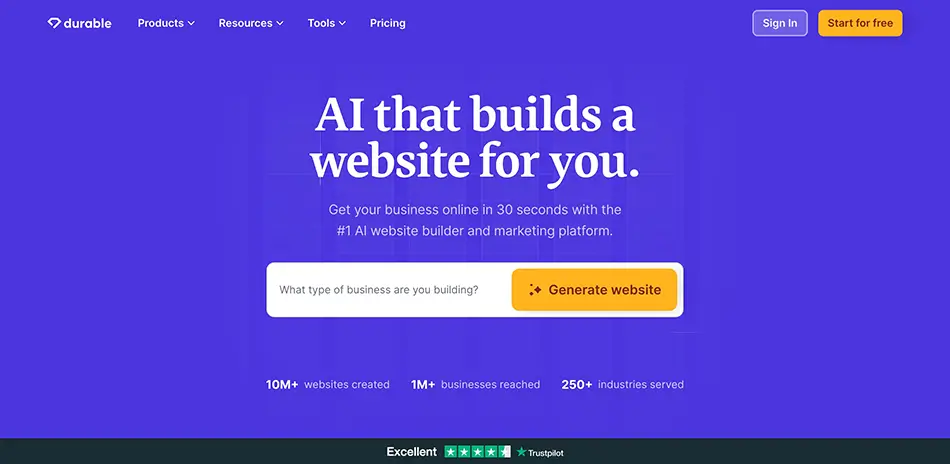 Best For: Small business owners, entrepreneurs, and individuals who want a fast, AI-powered website builder with full customization options and built-in business tools.